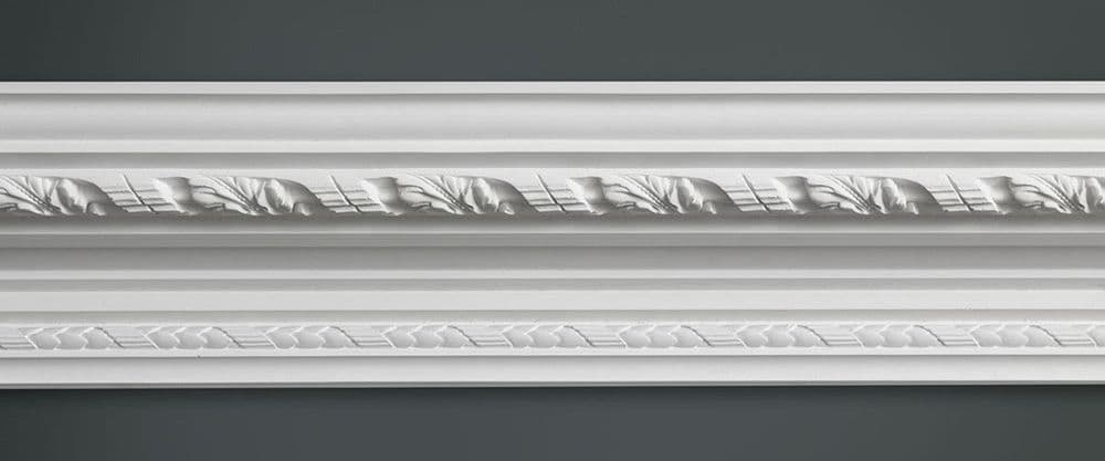 Petworth leaf plaster cornice design measuring 90mm x 165mm and manufactured in 3 metre lengths.